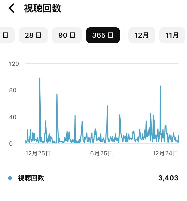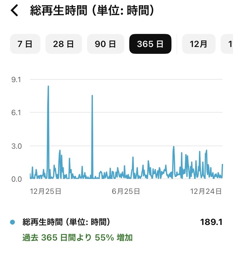 それでも1年間の総再生時間は約189時間、視聴回数は3,403回と前年よりも増えています。
