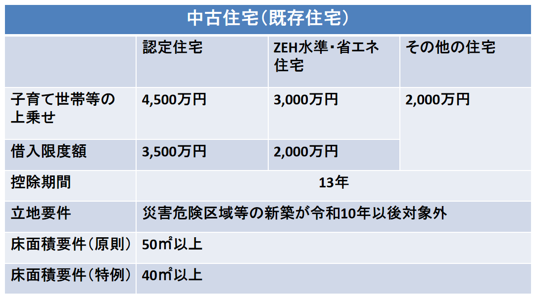 新築物件が値上がりを続けていることもあってか中古物件を買った場合の借入限度額が拡充されました。