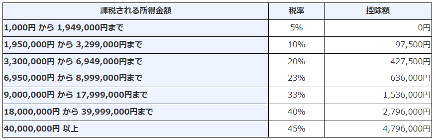 日本の場合には累進課税制度のため、所得が上がれば上がるほど税率は高くなります。