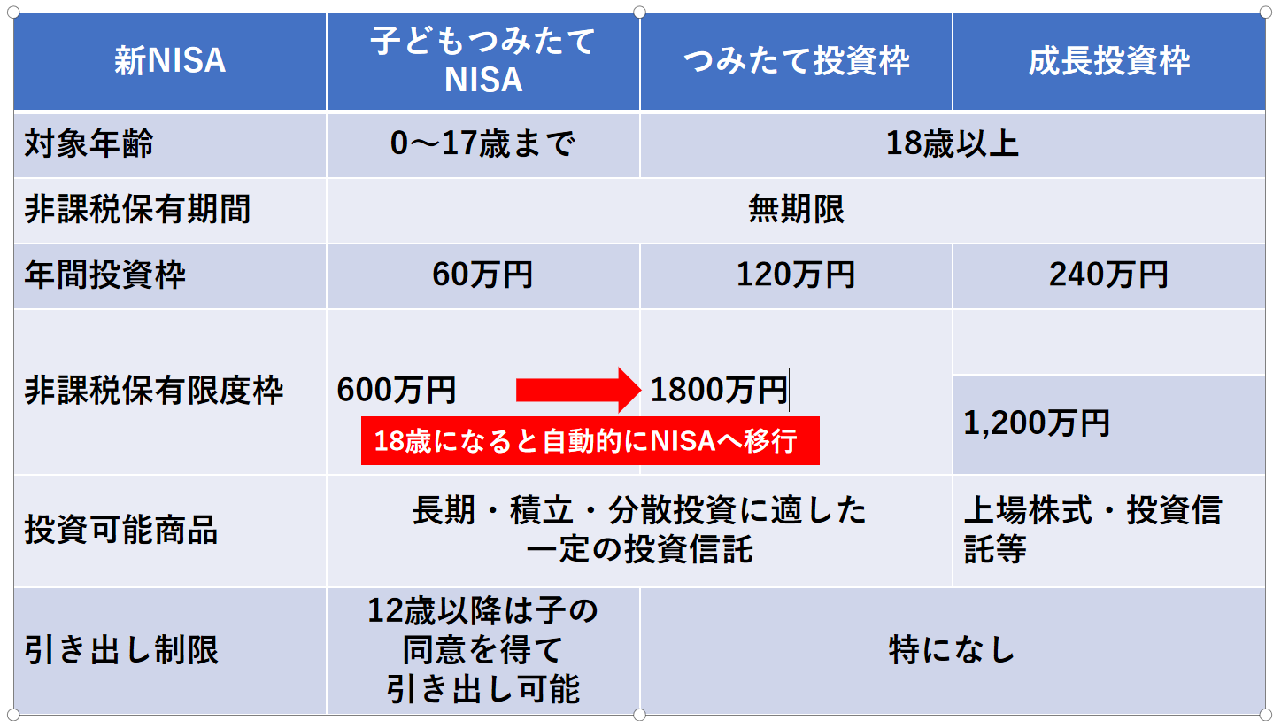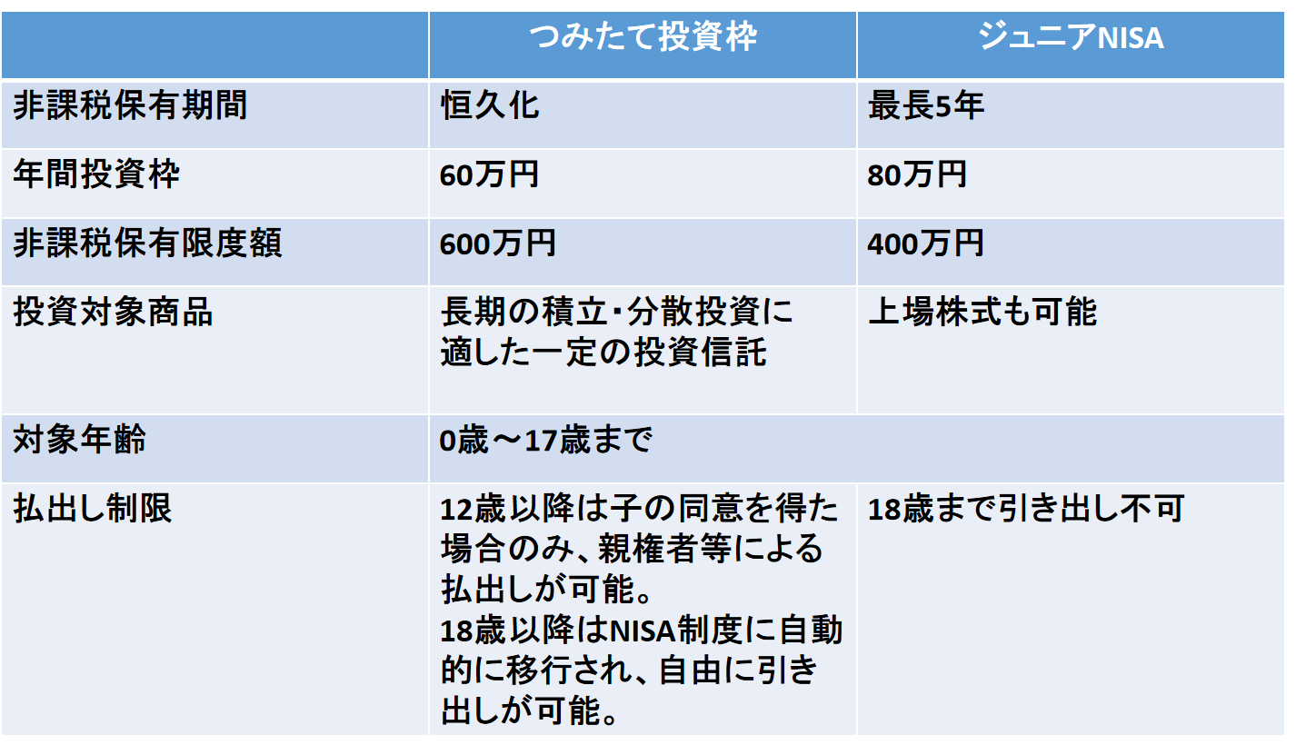 ジュニアNISAと比較すると、非課税保有期間が無制限になり、引き出し制限も緩和されたことにより利用しやすくなっていうのが分かります。